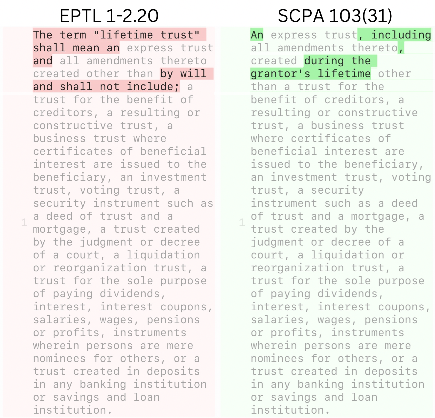 The following image shows the minor differences between the EPTL and SCPA definitions of lifetime trust: