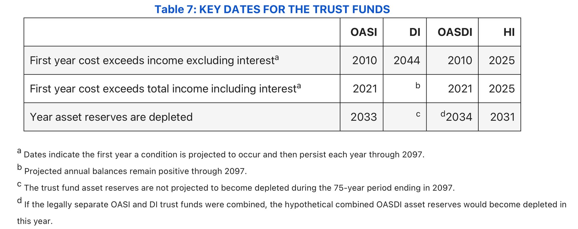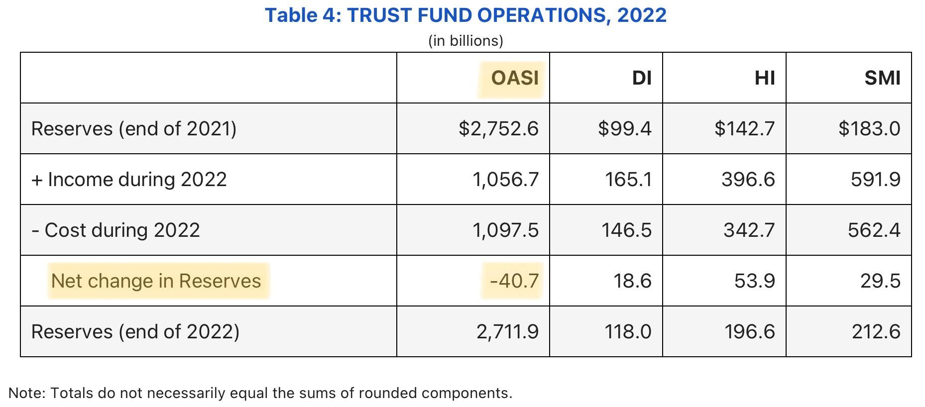Table 4 of the Trustee's Report shows that the reserves dropped by over $40 billion in 2022 because costs exceeded income: