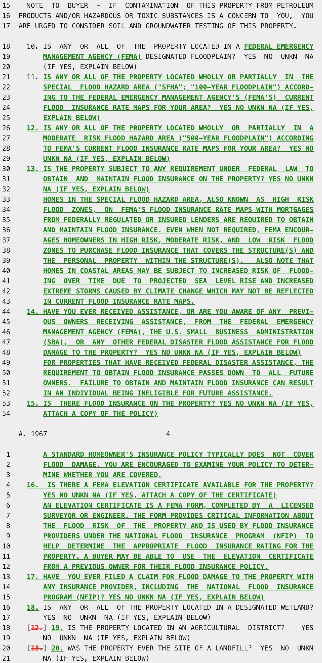 (2) Sellers Must Disclose Flood Risk Information on PCDS